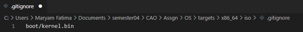 We also created a git ignore file as we are using git and added boot/kernel.bin to it.